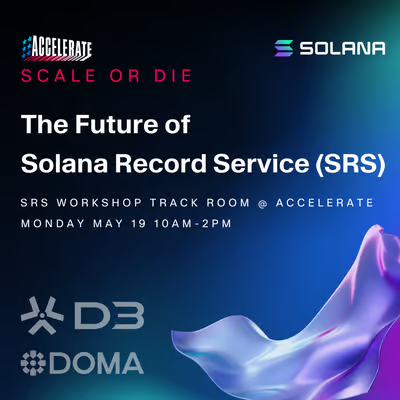 Last week, D3 hosted “The Future of Solana Record Service (SRS)” track at Solana’s Accelerate conference in New York. The session introduced SRS, purpose-built to evolve naming on Solana. SRS will enable developers like D3 to bring domains on Solana. I had the pleasure of co-hosting the workshop event with our good friends from Blueshift, Txtx, and Privy.